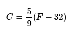 The following is the well-known formula for converting Fahrenheit (F) to Celsius (C):