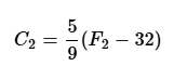 We can construct an analogous formula for a different temperature value, F2 and C2: