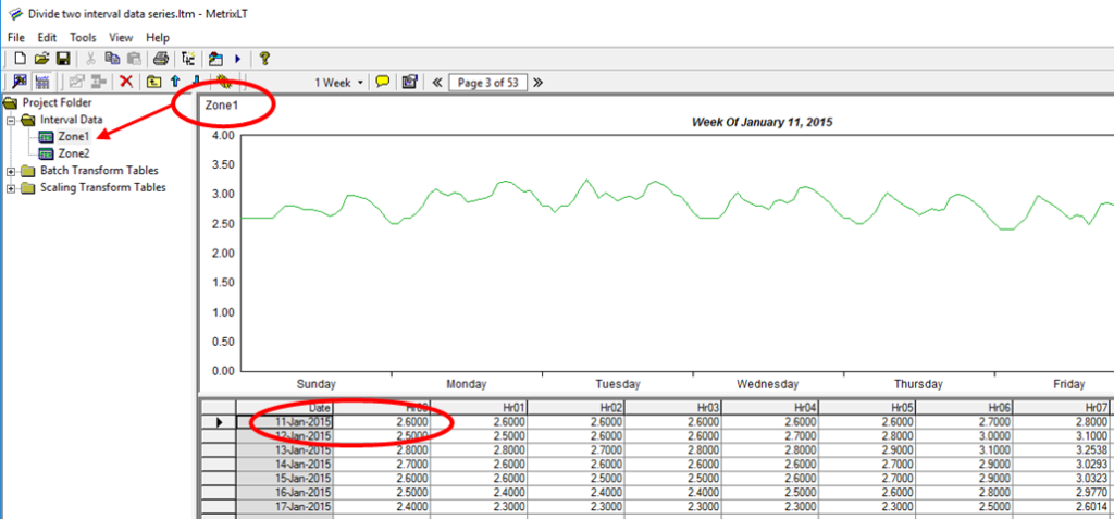 Import the hourly data in the Interval Data table. In this example, hourly data for Zone 1 and Zone 2 are imported. I’ve highlighted the January 11, 2015 values to check our work.