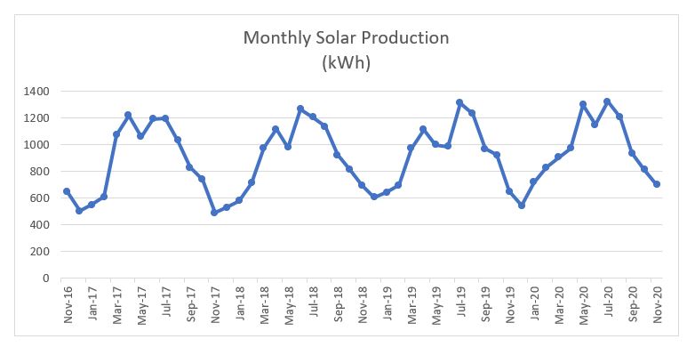 Some research indicates that cleaning your solar panels leads to small improvements in output, yet others say you should clean them twice a year. One site even suggested a 35% loss after two years, but it turns out that all of the cleaning recommendations tended to be from solar panel cleaning companies or from quoting stats via cleaning companies. Then I stumbled on a study by the Jacobs School of Engineering at UCSD that made me feel much better about not having given my panels any attention since they were installed. According to their research, due to the angle that the panels are mounted and being on a roof, they found that rain did a fine job of cleaning the panels as long as there are no bird droppings.