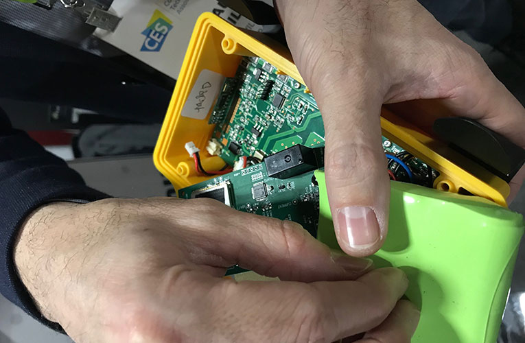 Among the guided tours that Itron hosted throughout the week was a group from Minalogic, a technology incubator in the Auvernge-Rhone-Alpes region of France. Delighted to see a Grenoble-based start-up featured in the Itron booth, Minalogic invited me to a curated tour of the vast hall of Eureka Park the next day. Housed in the Sands Hotel, an excursion to and from the Westgate to Eureka Park takes no less than two hours during CES! With the luxury of a canny driver and walking at a quick pace, we had exactly one hour to visit a handful of the French start-ups that Minalogic believed most closely aligned with Itron’s smart city vision.
