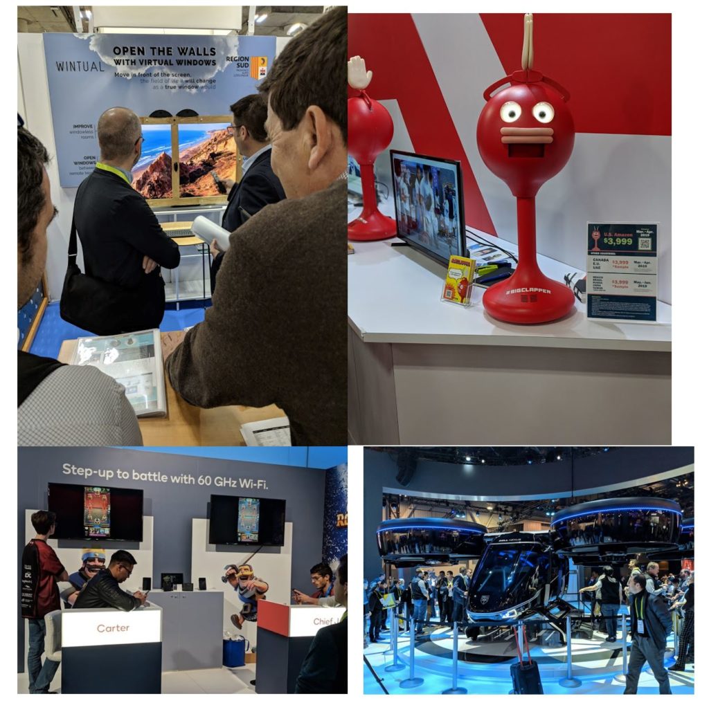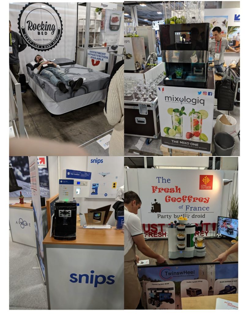 The first stop was Eureka Park at the Venetian, where 1,200 startups from all over the world exhibited their best ideas. A rocking bed, which moves left and right while you lay down, seemed to be appreciated by the gentleman who tried it. A voice-activated coffee machine that would brew a coffee when you said “Yo, make me a coffee!” A robot that carries your beer and snacks to the couch (I need that!). Monitors shaped like windows that change what you see “outside.” A cocktail maker that always makes you the perfect drink. A robot that claps because everyone likes clapping.