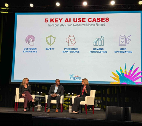 Then, Marina Donovan, Itron’s vice president of global marketing, ESG and public affairs, led a fireside chat with Kristy Stone, chief customer officer at Duquesne Lighting Company, and Ron King, vice president of operations & maintenance at Peoples Natural Gas. The group discussed themes from the 2025 Itron Resourcefulness Report, which explores the impact of data analytics, machine learning (ML), artificial intelligence (AI) and grid edge intelligence across five key utility use cases: customer experience, safety, predictive maintenance, demand forecasting and grid optimization. Kristy highlighted how Duquesne is focused on predictive maintenance, while Ron drew attention to how Peoples Natural Gas prioritizes enhancing safety as its top use case.
