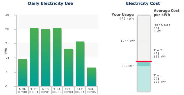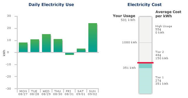 Below are the July and August bill charges. Dipping into Tier 2 cost an extra $118.