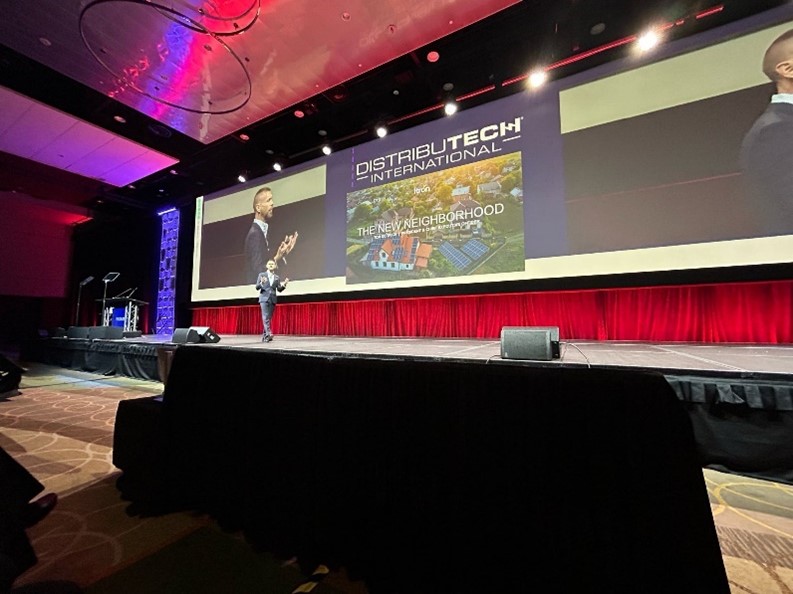 To kick off the conference, our president and CEO, Tom Deitrich, welcomed attendees on the keynote stage where he discussed the “new neighborhood” and the convergence of dynamic forces within the industry and across the globe that are driving the need to modernize the grid. The increasing amount of distributed energy resources (DERs), microgrids, photovoltaic (PVs) solar and electric vehicles (EVs), showing up in utilities’ service territories in combination with extreme weather, cybersecurity attacks and other factors, are creating an enormous amount of pressure for utilities to maintain reliable service delivery. While there’s more stress on the grid than ever before, grid edge intelligence gives utilities the ability to understand, control and optimize assets across the grid. What once was a matter of balancing supply and demand has evolved into a highly complex challenge for utilities everywhere, which is exactly what intelligence at the grid edge can help address.