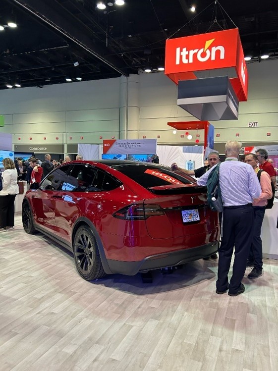 A major area of focus at this year’s DISTRIBUTECH was the increasing influx of EVs on the grid. For transportation electrification to continue accelerating at its current rate, the barriers for EV charging deployment need to be removed for utilities and the end consumer. Below is the EV that was on display in the Itron booth in addition to Itron’s EV solutions, which ensure that charging assets work in harmony with the grid. Itron’s focus is on managed charging, which ensures end customers manage their charging costs while utilities protect the grid.